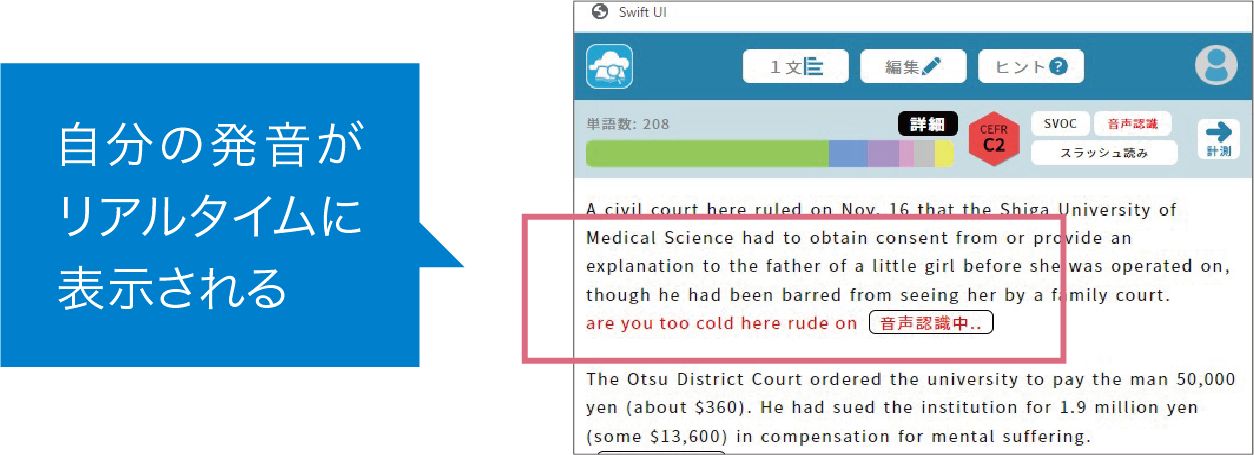 音声認識機能があるので、英語や第二外国語で自分の発音をチェックして効果的に発音を鍛えることができます。
