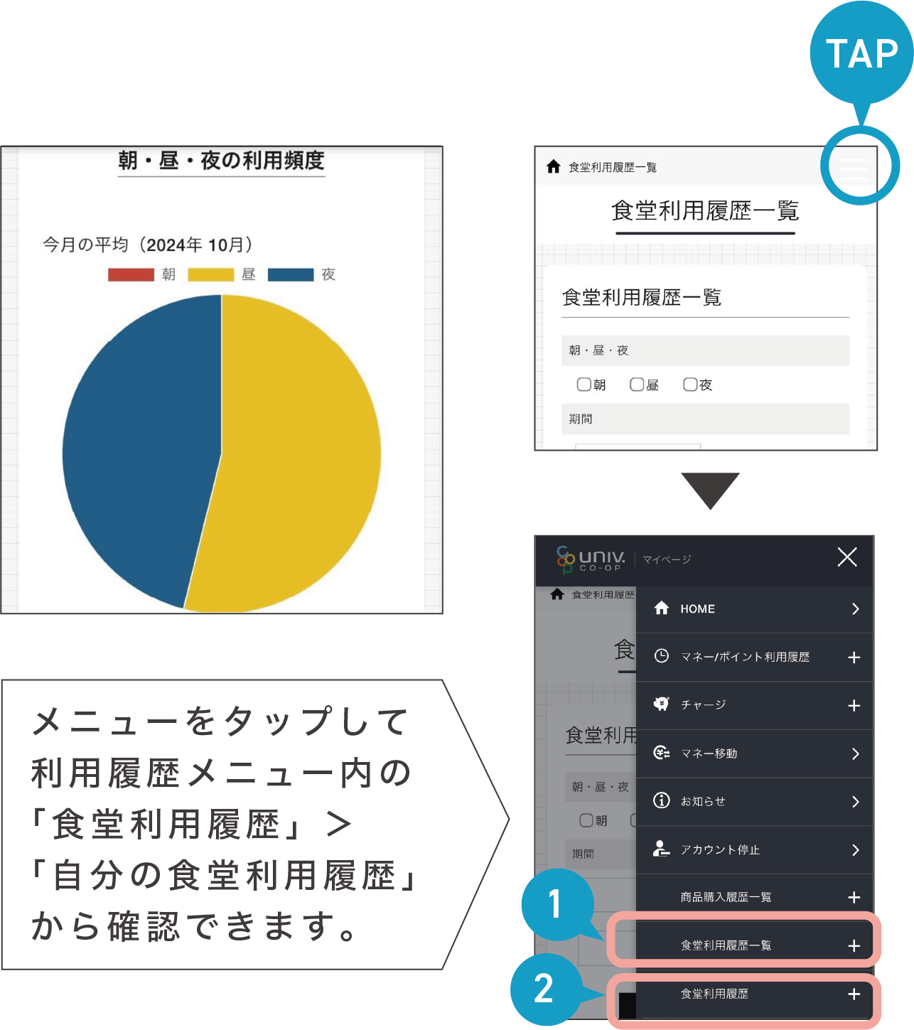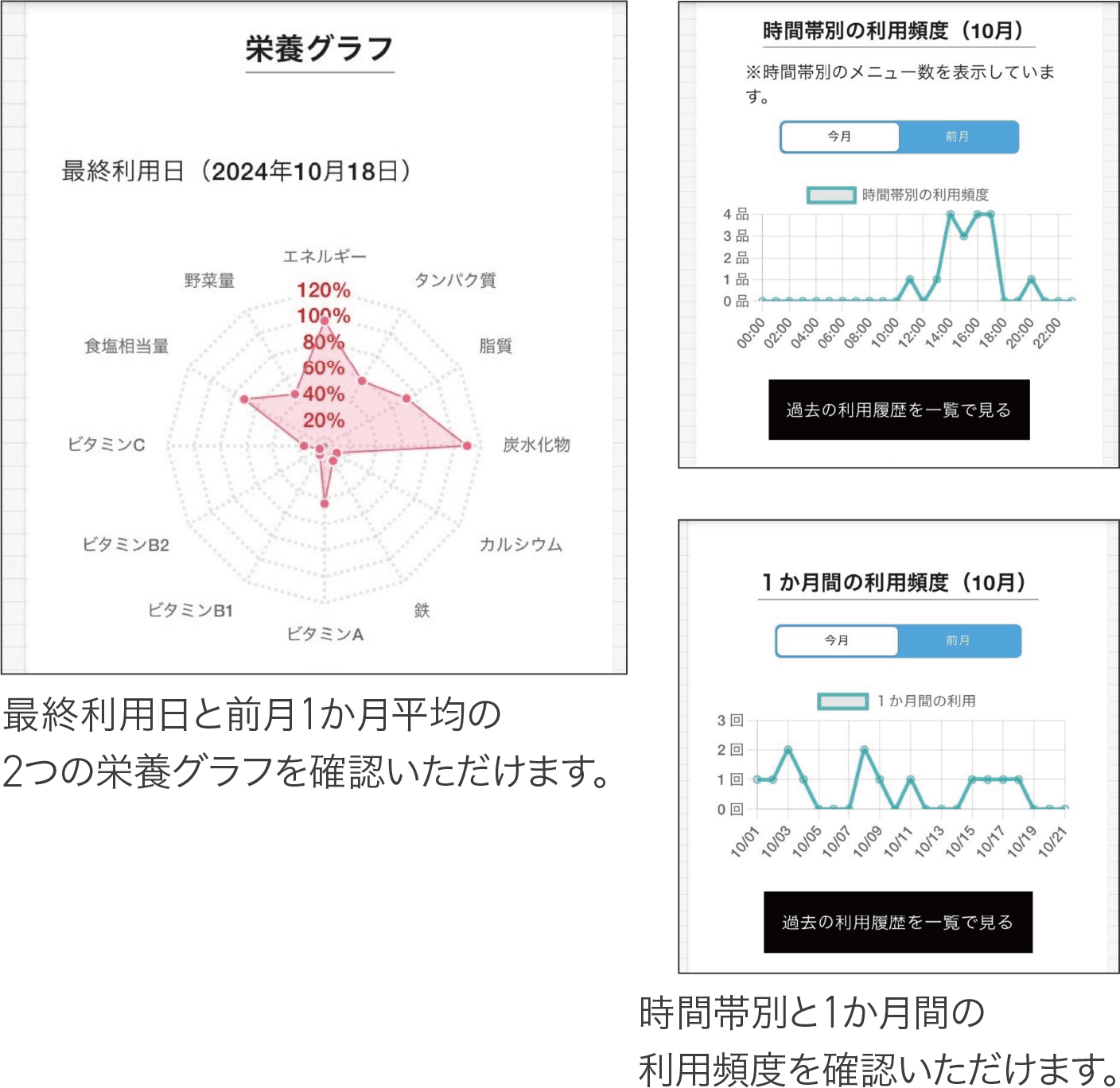 繰り越せない仕組みだからこそ、毎日食べることが習慣になります。利用履歴を確認し考えながら食べる習慣をつけましょう。保護者の方も利用履歴をご覧いただけます。