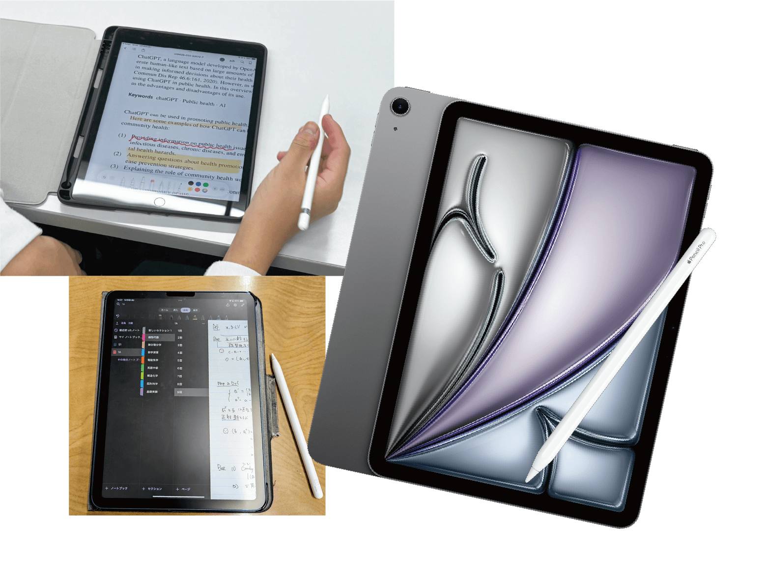 ノートを取ったり、資料閲覧、調べ物に学修を効率よく進めるために必要なiPad